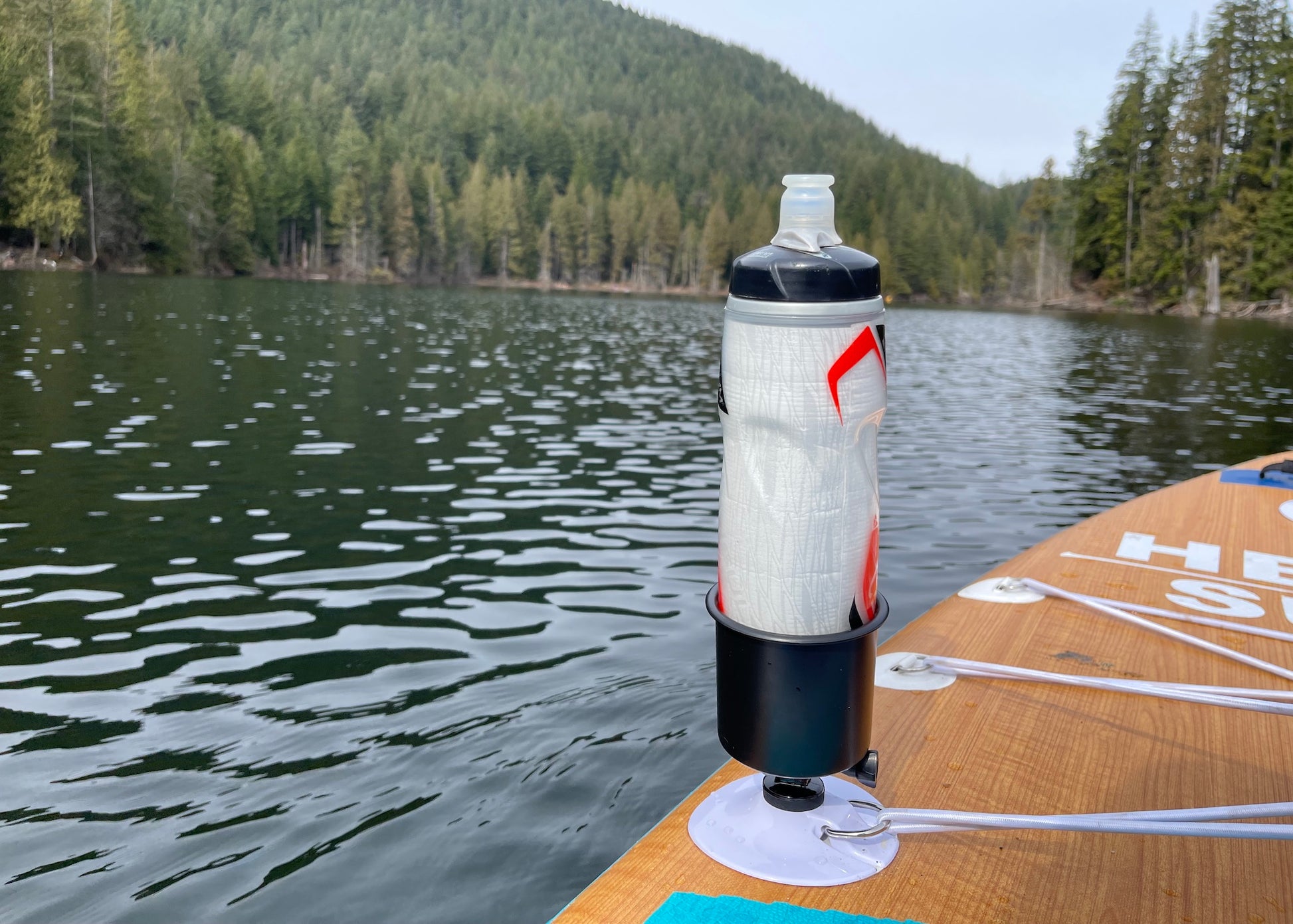 This could be your new favourite SUP accessory! Bring out your water bottle, tea/coffee or tasty beverage while paddle boarding and don't worry about it spilling or falling over.